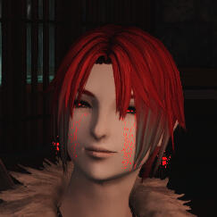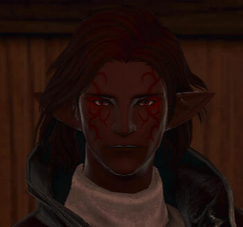 Originally born in the Sharlayan Colony, Elyas was raised by a pair of Hyur in Ishgard from age 4 onward. At age 9 they formed a pact with the voidsent Barbatos, restoring to them the use of the paralyzed left side of their body. At 17 they would leave the city on an errand, and be forbidden re-entry, their papers torn up. At this point they set off for Ul’dah, where they would meet Kaiyo Mikazuki 3 years later. They are an accomplished adventurer, a skilled voidsent hunter, and an occasional performer in the Masked Carnivale.Over the course of their adventures, they and Kaiyo would come to learn that they are soulmates, bound to forever find one another in any incarnation, any lifetime, no matter the difficulties. Together, the two of them run an adventuring company called Oschon's Journey.Elyas is a skilled mimic, and their Echo provides them with the ability to learn new skills incredibly quickly. Likewise, they can understand a language and speak a language after hearing a single word from a native speaker, and read and write after reading a word written by a native speaker. This comes at the cost of not having visions, which unless they are close enough to Kaiyo, provide debilitating migraines in their place. Their bond with Barbatos also enables them to easily manipulate void aether, as well as to regenerate after being injured.They are not without their weaknesses however. Levin and earth aspected aether can 'unbalance' the connection between them and their voidsent, threatening their ability to use their body. The metabolism required to regenerate on the scale they do means that poisons and drugs are incredibly effective on them. Many tricks effective against voidsent such as binding circles are effective on them as well. Overuse of their Echo's abilities leads to migraines, as well as exhaustion. They are insecure, and desperate for affection in an attempt to prove to themself that they can be loved, and that Kaiyo's love for them isn't just 'fate'.Beyond that they are kind, if not hot-headed sometimes, and strive to do what they feel is right. Emotional instability and mood swings do strike them as a result of their pact, but these have lessened with time, mostly manifesting in a recurring bloodlust at this point.They will do almost anything to protect the people they care about -- be that their parents, their siblings, or their partners and friends.Elyas's body is best described as a gymnast's build. There's a teardrop shaped brand on Elyas's right cheek, just below the eye. It's charred into their skin, and surrounding it is a patch of burn-scarred flesh. Their left ear is notched/tagged. A pair of black, demon-like horns protrudes from their head, and their body is covered in a tapestry of scars. Their left cheek has an 'x' shaped scar, while the left side of their body appears to have suffered long-faded burn scars. It also looks as though both of their arms were completely cut through and reattached at one point, based on scars that circle their biceps. Their abdomen has a tangled scar as if something the size of a human hand impaled them, and their recently became body is covered in an intricate web of scars that look almost ritualistic in nature. Their left collarbone bears a spider lily tattoo that creeps up their neck, and their right shoulder blade has a rose tattoo -- both are maroon instead of crimson. Their back is covered in a plethora of lashing marks as well.